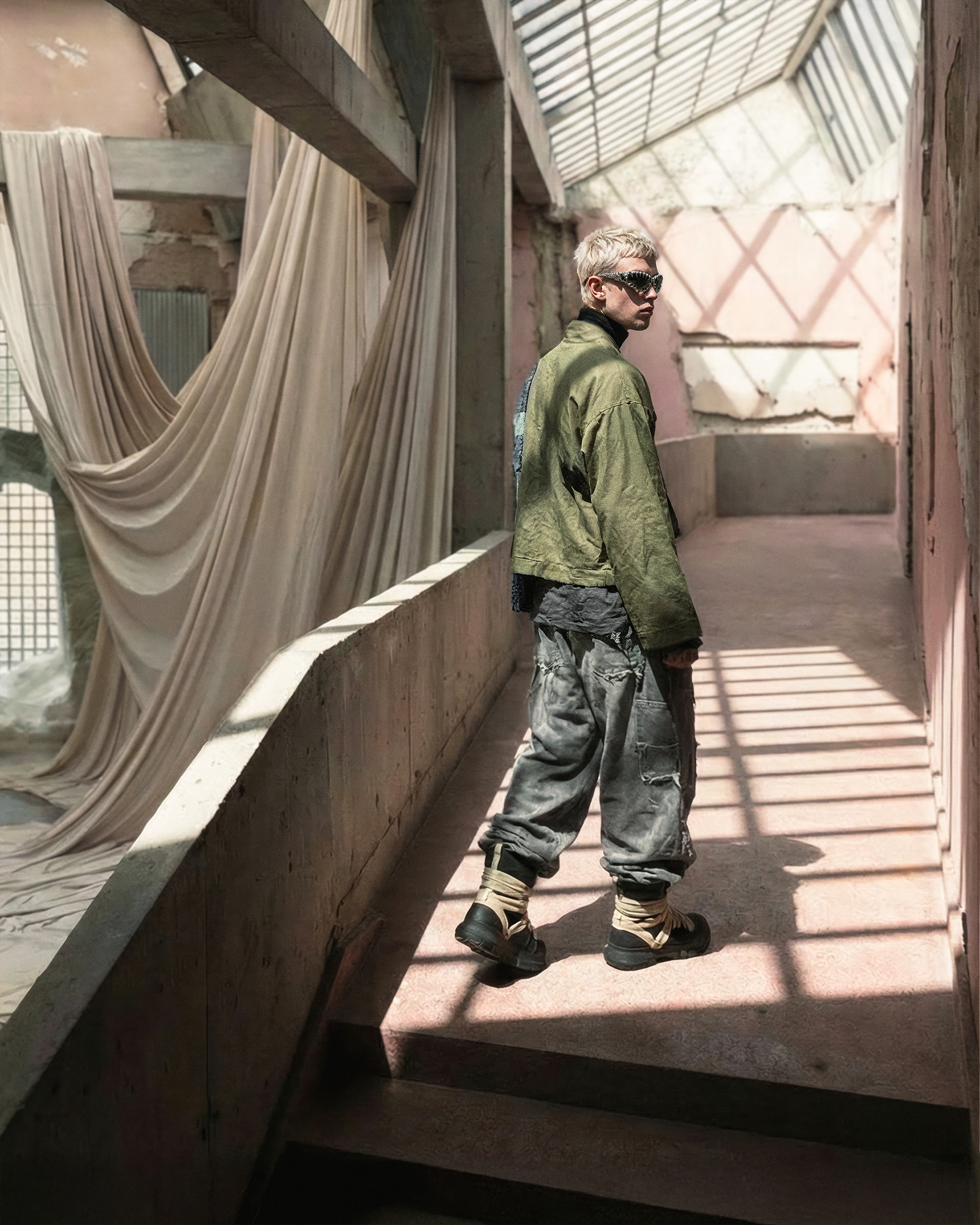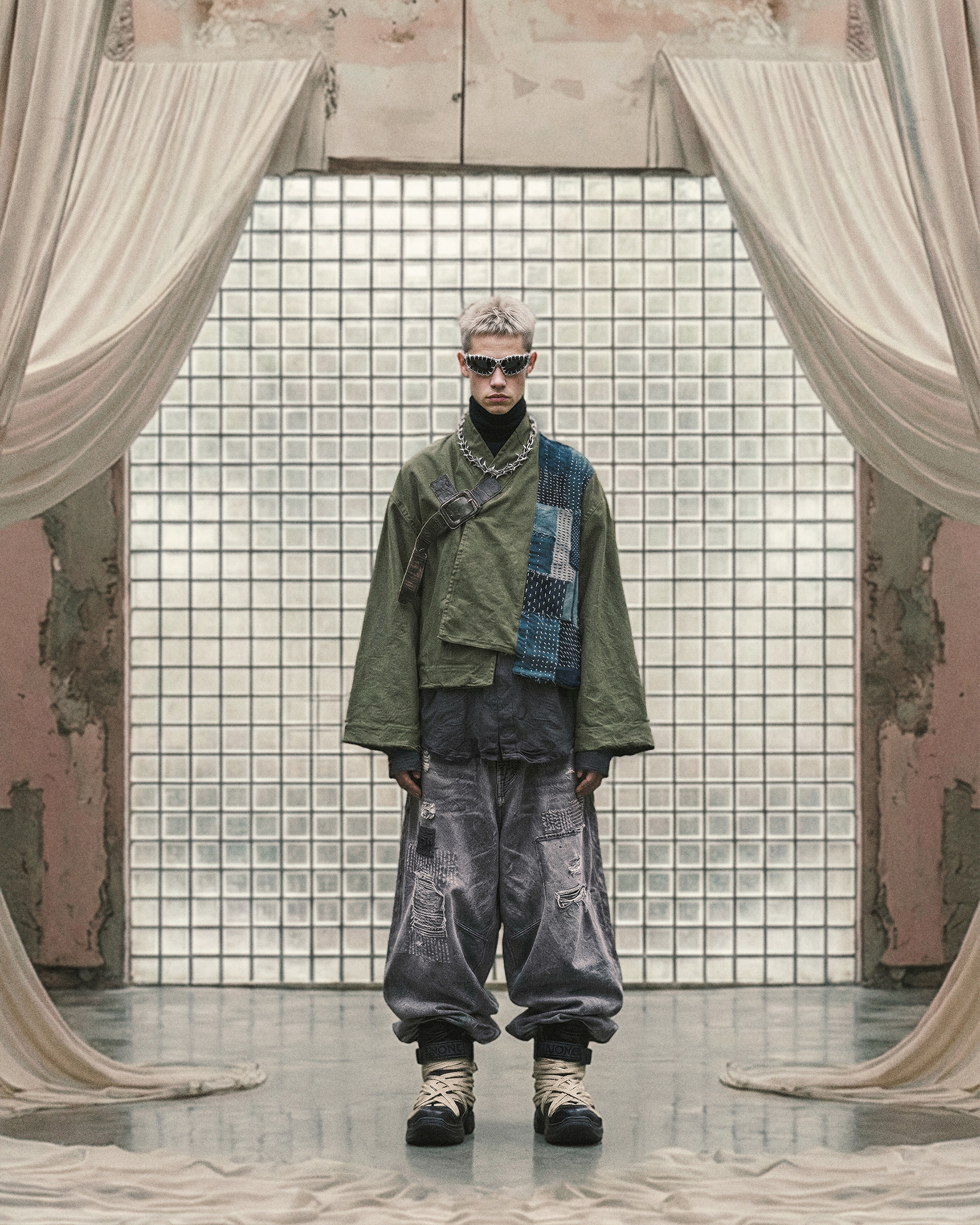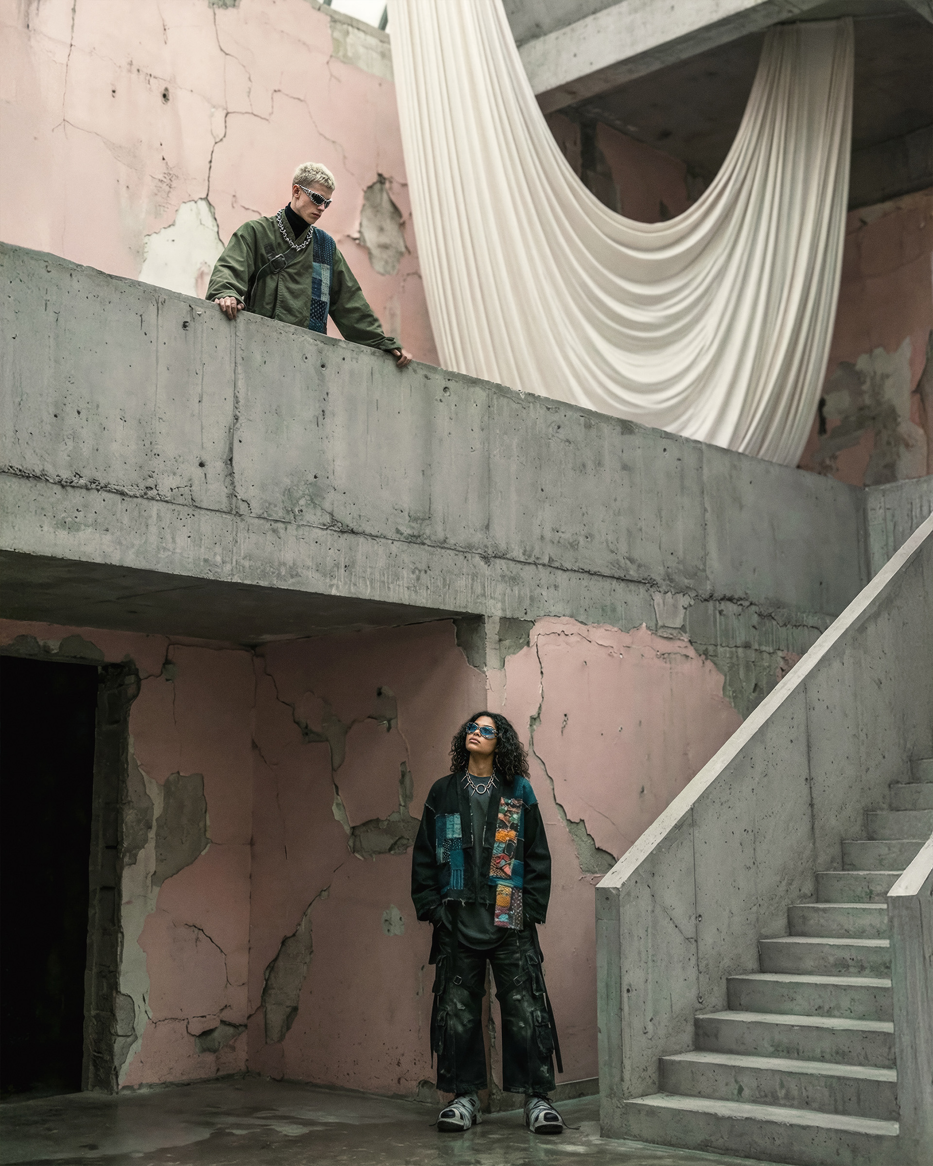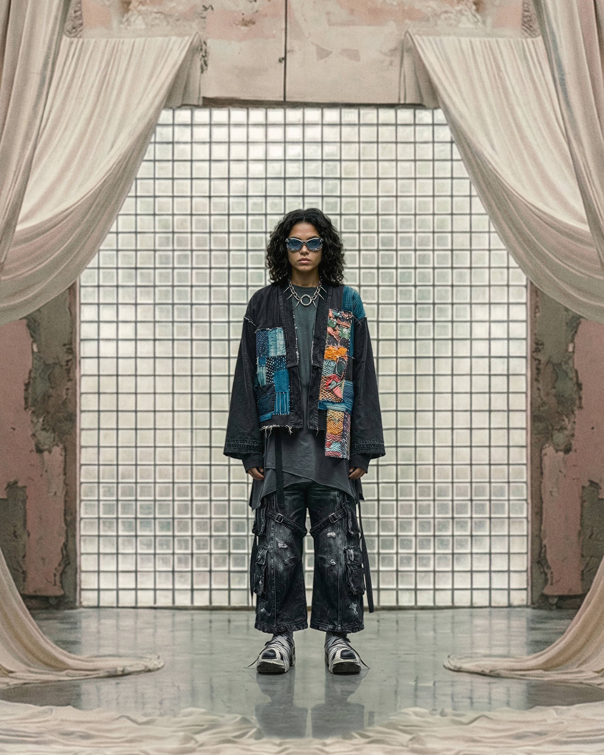 This project was developed end-to-end, beginning with character definition and environmental structure before any final imagery was produced. AI was integrated as a controlled development tool—used to establish a cohesive visual language, test spatial relationships, and refine mood, posture, and styling logic. Every element was art-directed from scratch to maintain consistency and internal coherence across the series.