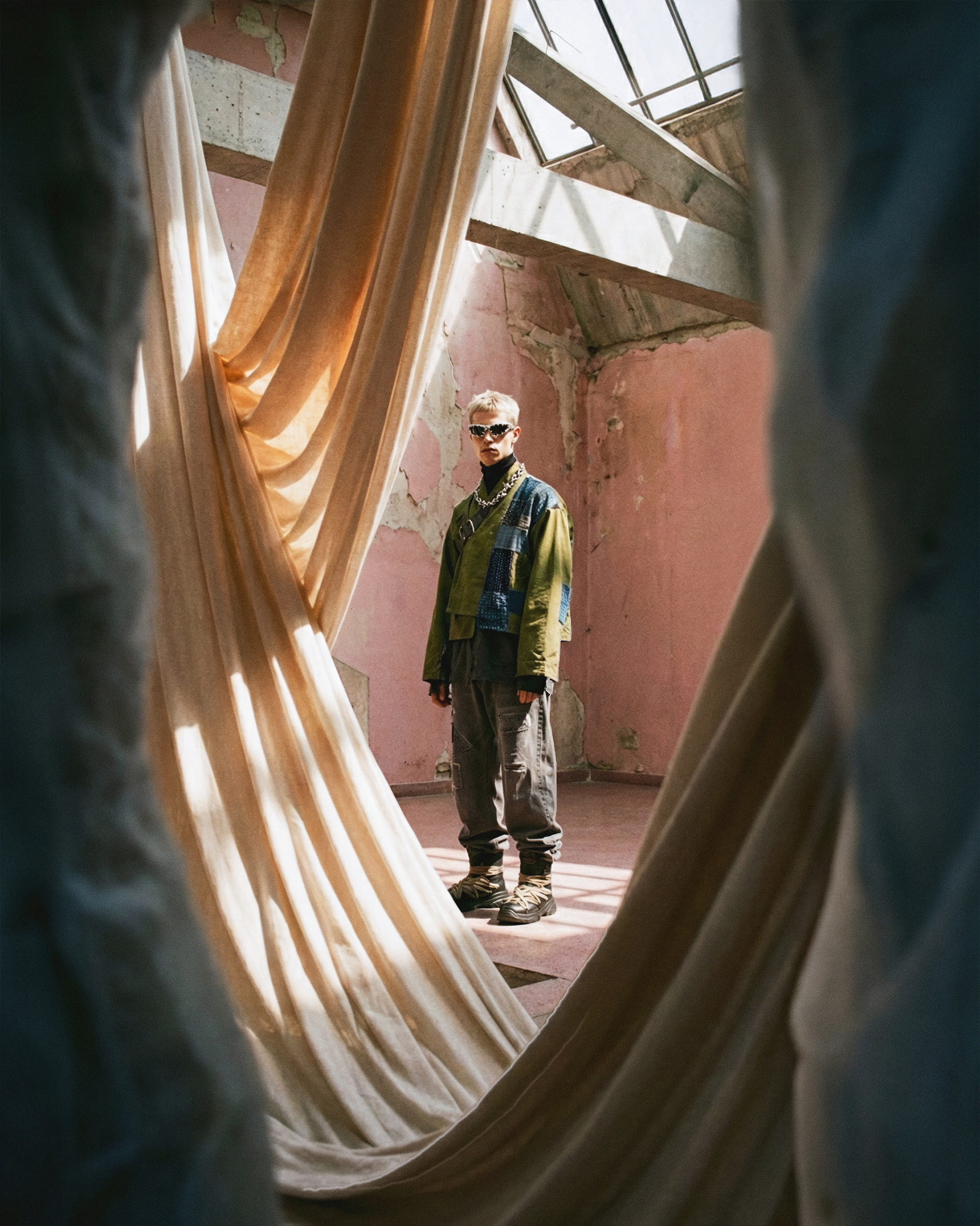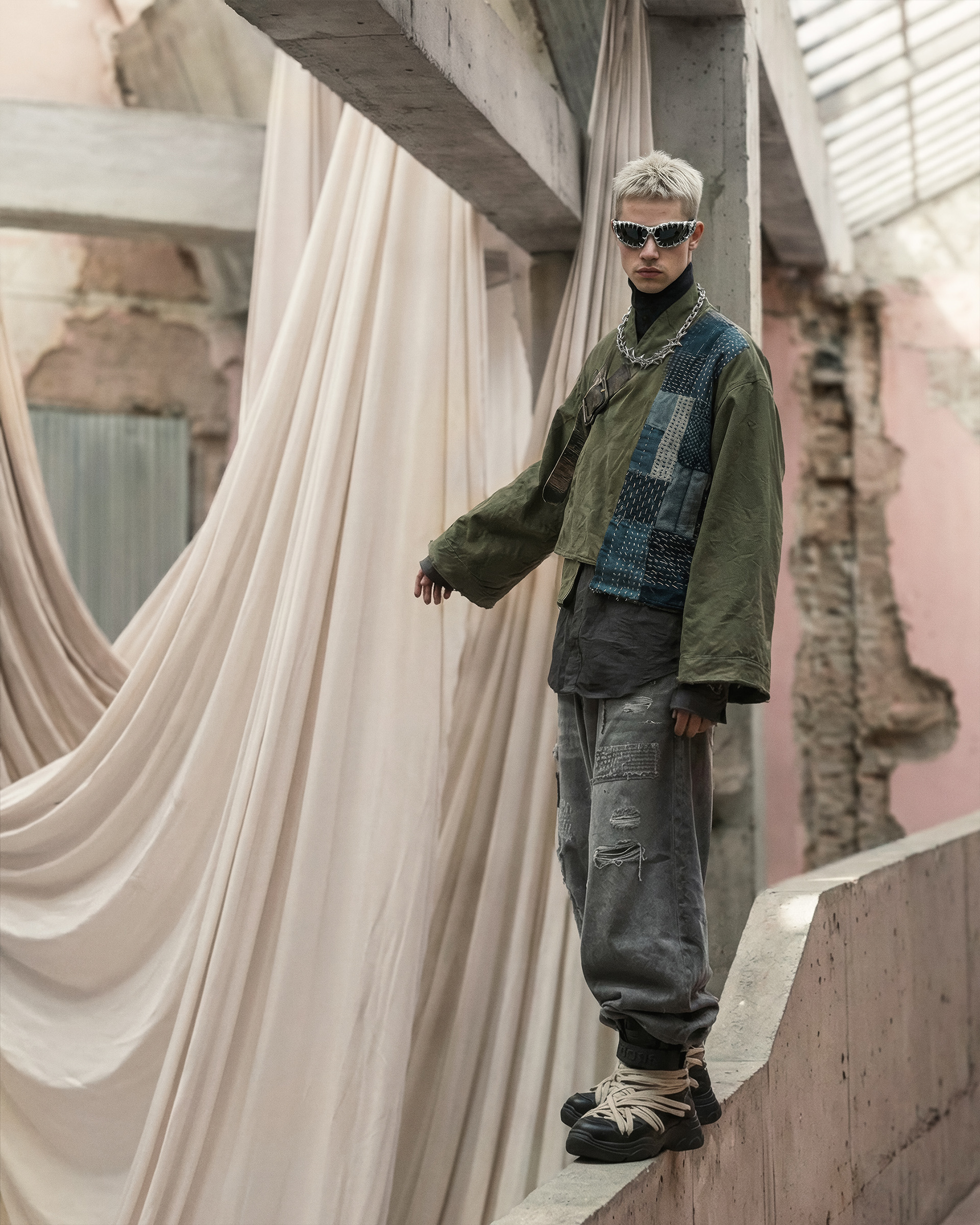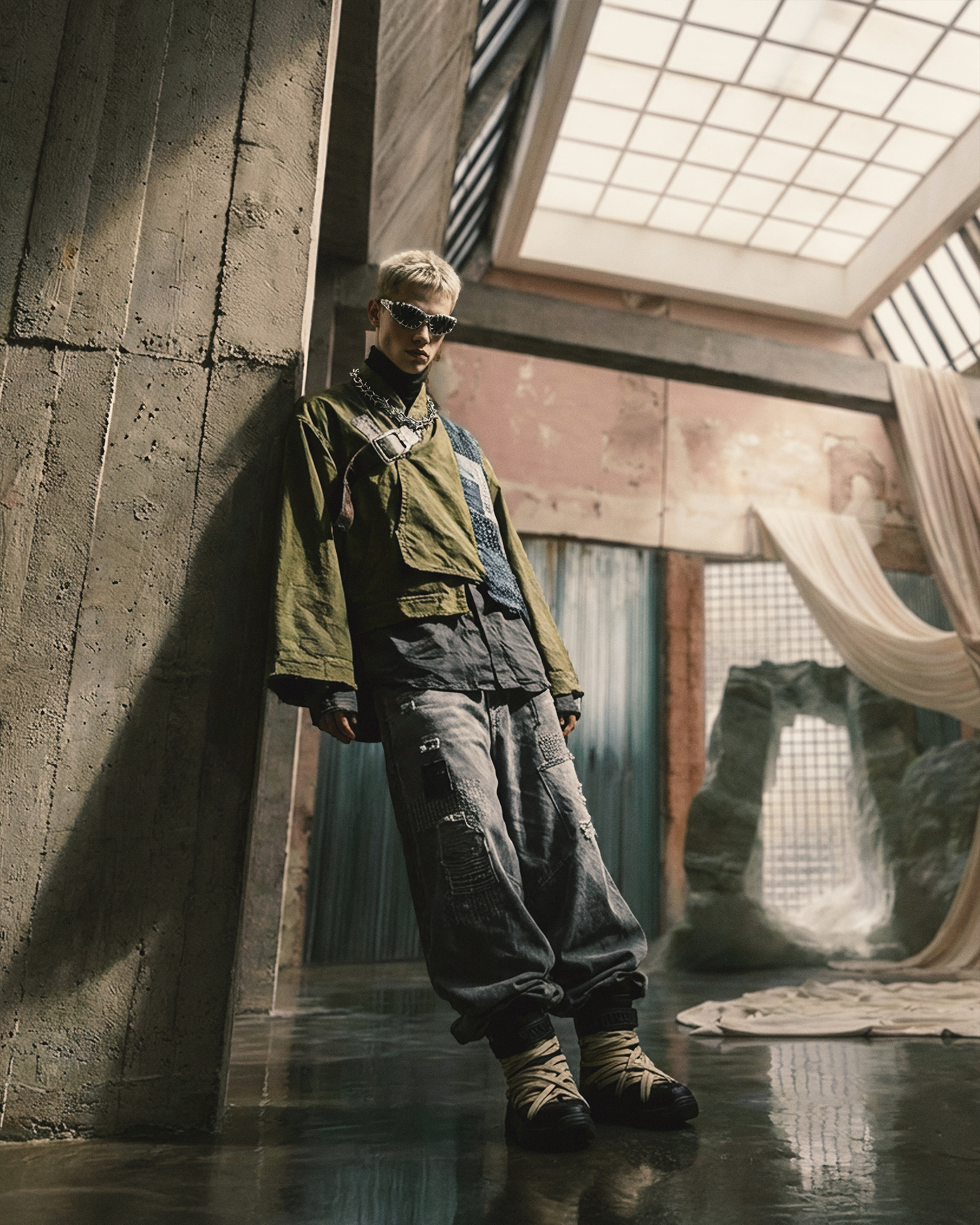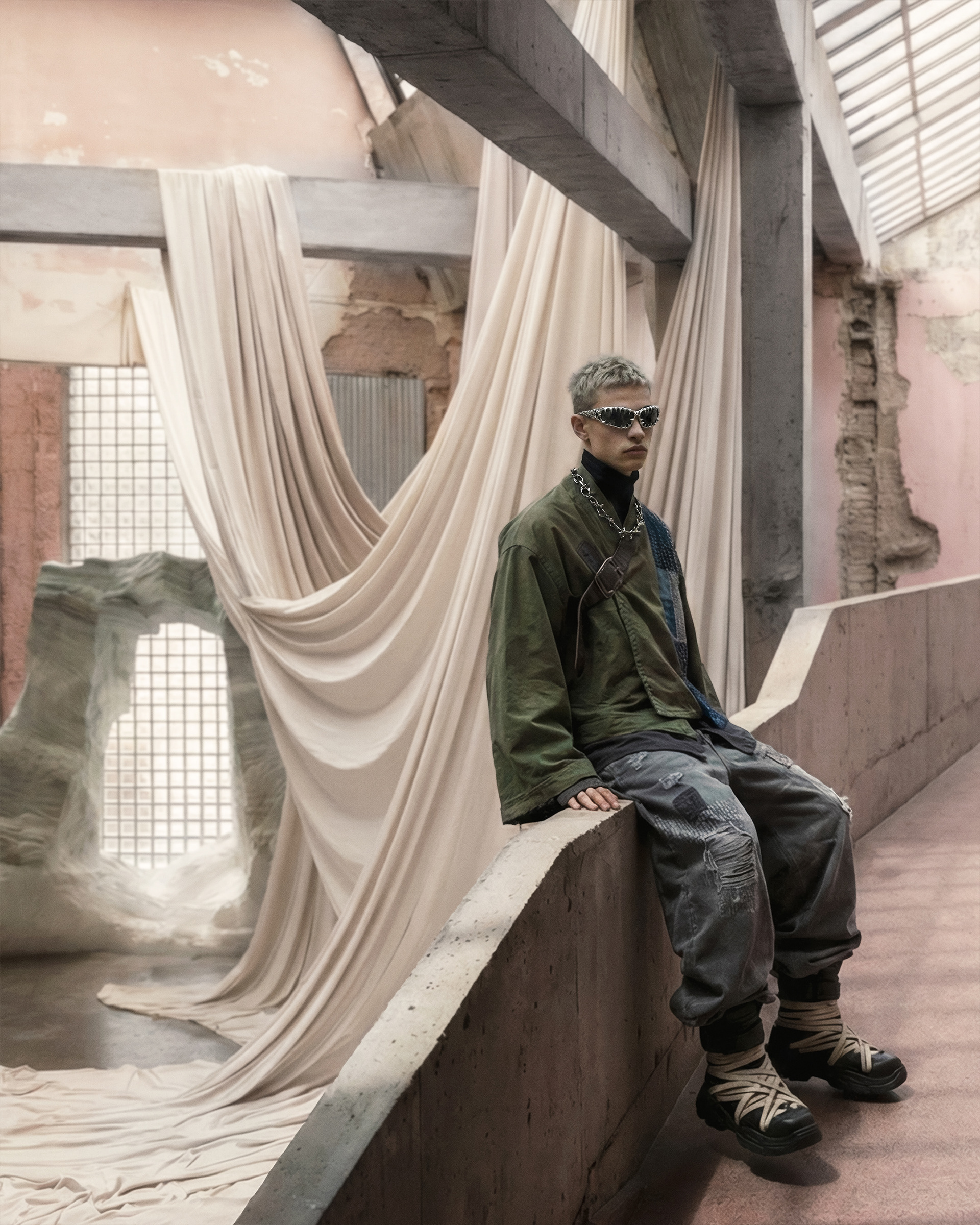 This project was developed end-to-end, beginning with character definition and environmental structure before any final imagery was produced. AI was integrated as a controlled development tool—used to establish a cohesive visual language, test spatial relationships, and refine mood, posture, and styling logic. Every element was art-directed from scratch to maintain consistency and internal coherence across the series.